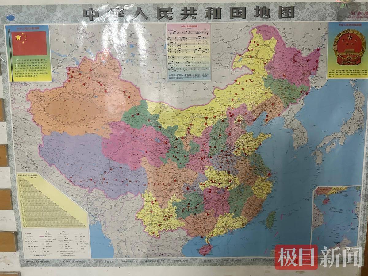 地图上的红色标记是一家人旅行过的地方(极目新闻记者摄)